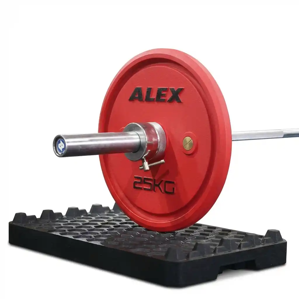 Visualizing the load is instant. The plates are painted in standard Powerlifting colors: Red (25kg), Blue (20kg), Yellow (15kg), Green (10kg), and White/Black for smaller change plates. This universal language makes loading the bar faster and reduces math errors during intense sessions. The high-quality powder coat resists chipping and fading.