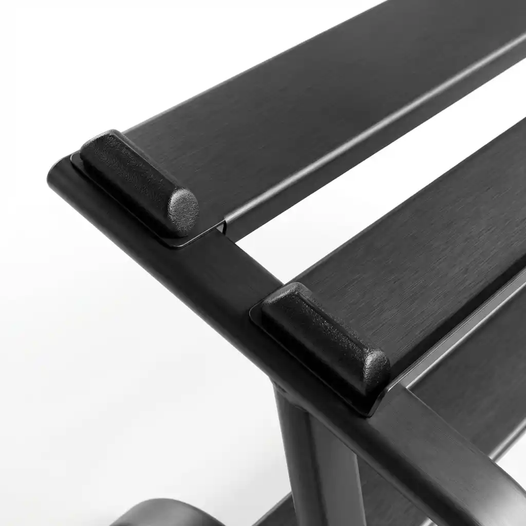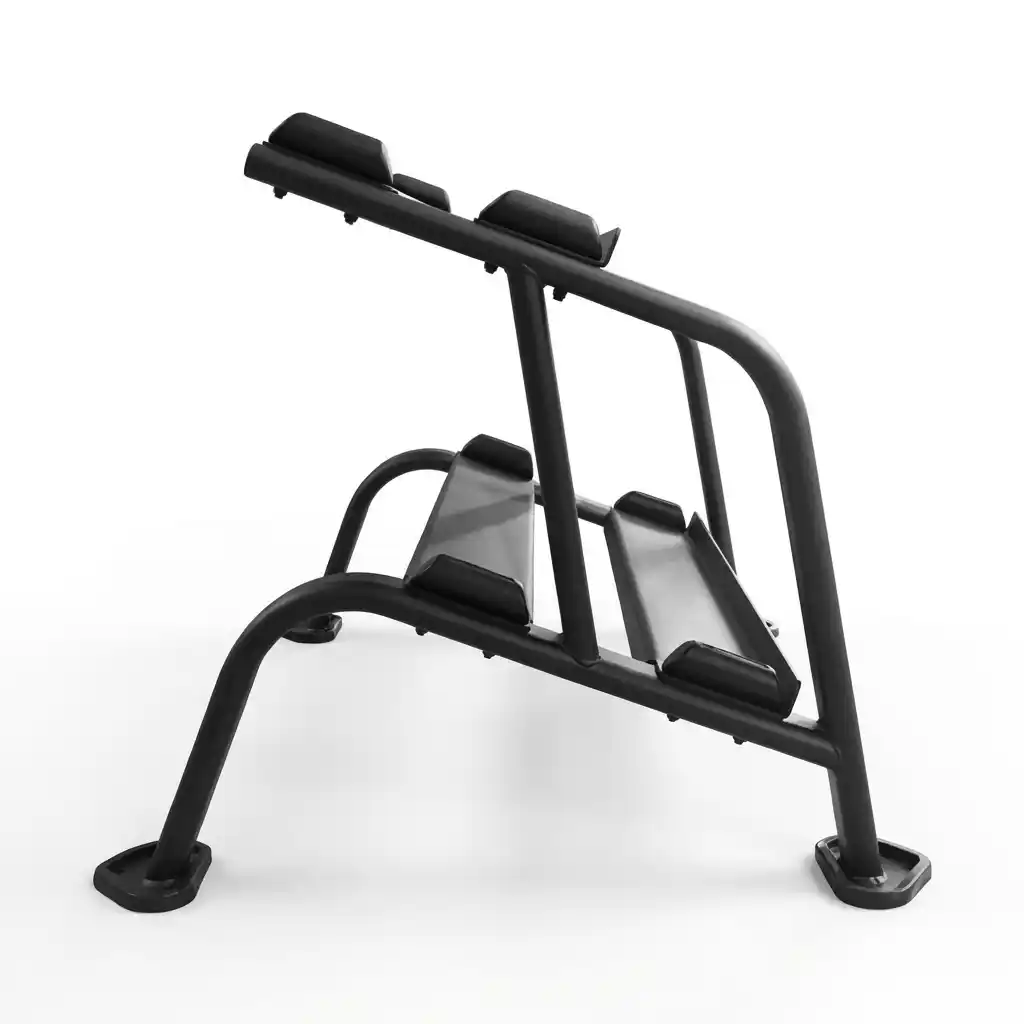The rack geometry is tailored for the dimensions of lighter aerobic dumbbells. The spacing between tiers and the width of the rails are perfect for Neoprene or Chrome “beauty bells.” It keeps these smaller items organized and prevents them from getting lost or piled in a corner.