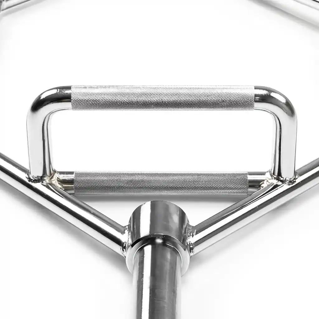 The bar features elevated handles that shorten the distance to the pick-up point. This is a game-changer for athletes with tight hamstrings or tall lifters who struggle to reach a standard bar without rounding their back. The raised position allows for a safer, stronger start, promoting better mechanics and confidence.