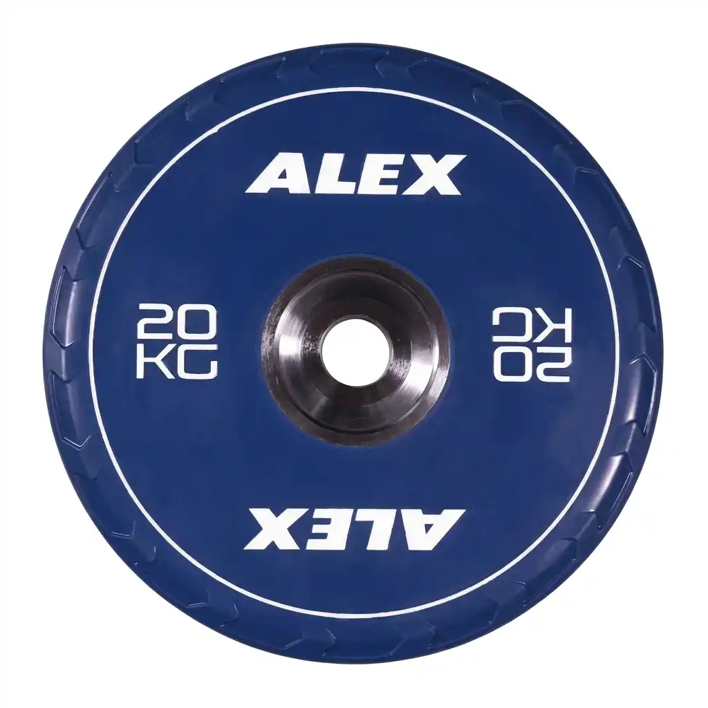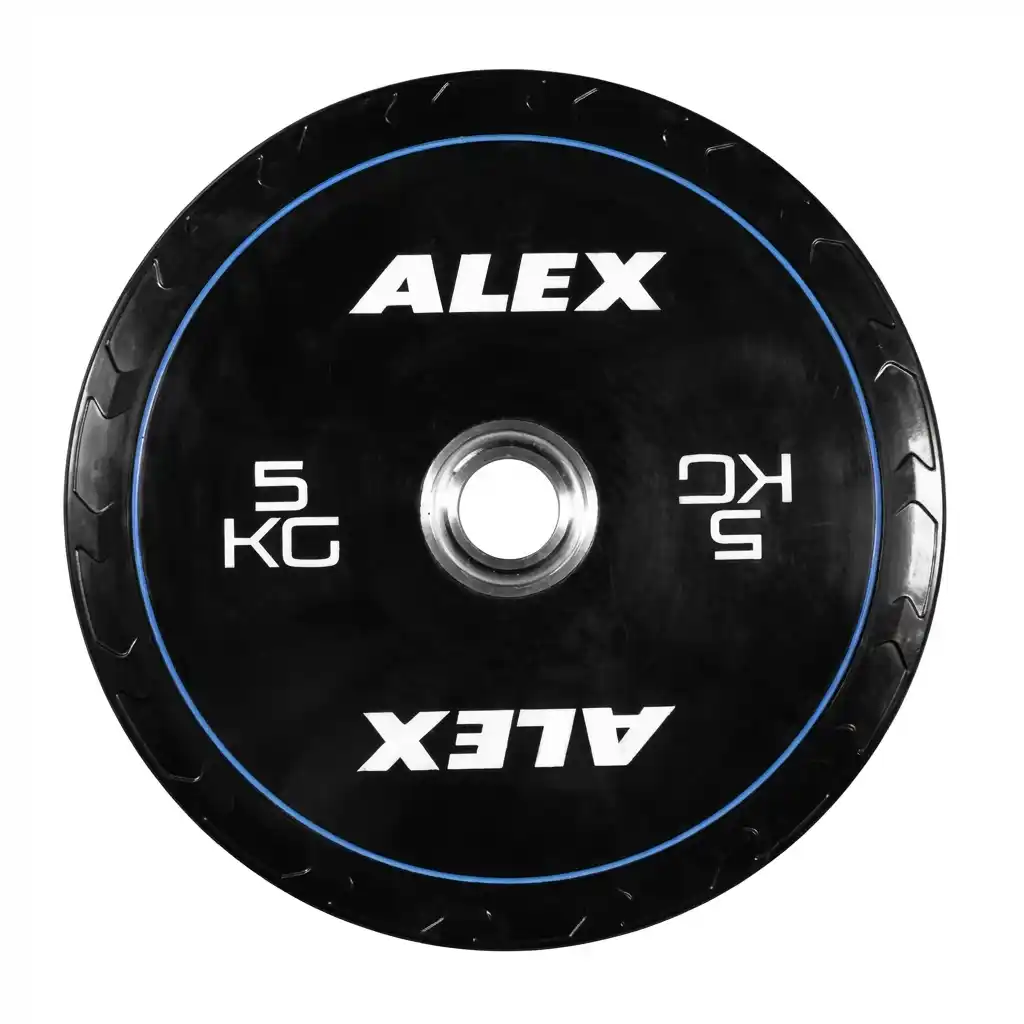 The Olympic Rubber Bumper Plate-T1 by Alexandave Industries Ltd is a premium training plate designed for durability and ease of use. Featuring a Hard Chrome steel hub insert, it glides smoothly onto the bar and resists insert separation. The high-density virgin rubber construction offers a low, safe bounce and a sleek, easy-to-clean surface. With a beveled edge for effortless pickup from the floor and vibrant color coding, it combines professional features with daily durability. Ideal for commercial gyms, and high-end home setups.
