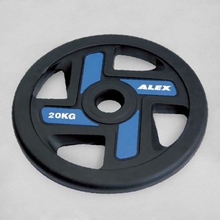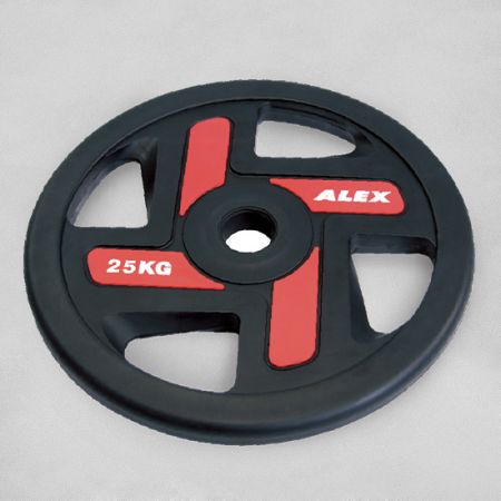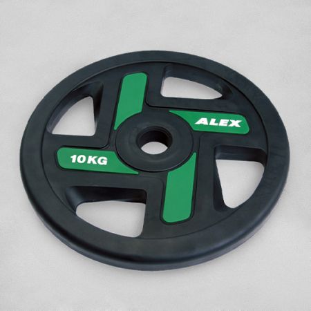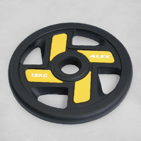 La plaque olympique ALEX 4 trous en TPU est recouverte de TPU écologique, offrant une grande endurance à l'abrasion, à la déchirure, à la flexion et aux basses températures pour rendre les plaques plus durables et résistantes aux chocs.